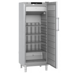 Mélyhűtő szekrény ventilációs hűtési rendszer (NoFrost technológia); zárható teli ajtó; kapcsolható felső LED világítás; LightAlarm: riasztás fényjelzéssel; hűtési tartomány: -9/-26°C között; SuperFrost funkció; ajtóba integrált érintőgombos monokróm kijelző; digitális hőmérsékletkijelzés; optikai és akusztikus riasztási funkciók: eltérő hőmérséklet, ajtó nyitva maradás és áramkimaradás esetén, az áramellátás helyreállásával; integrált adatmemória: elmúlt időszak (kb. 42 nap) min/max. hőmérsékleti értékeinek eltárolása és kijelzőn történő megjelenítése; billentyűzár funkció; nyomáskiegyenlítő szelep; keretfűtés; kívül rozsdamentes acél burkolat; egy darabból készült, hőformázott, szürke színű polisztirol (környezetbarát) belső burkolat; tisztító nyílás; 4 db megerősített, 600x510 mm méretű, szürke színű védőbevonatos acél rácspolc, STOP funkcióval; polconkénti terhelhetőség: max. 60 kg; a polcok magassága 100 mm-ként állítható; padlórács; az ajtó 90°-os nyitási szög felett nyitva marad, ez alatt önműködően csukódik és nyitásának iránya megfordítható; higiénikus, cserélhető ajtószigetelés; ergonomikus alumínium fogantyú; automatikus - szükségvezérelt és manuálisan is indítható - forrógázos leolvasztás; rozsdamentes acél 150-180 mm között állítható lábak; FCKW-FKW mentes hűtőközeg (R 290) és falszigetelés (67 mm); külső hőmérséklet: +10/+40°C között - 5. klímaosztály; FRFCvg 6501 hűtővel párba állítható; éves energiafogyasztás: 1116 kWh; B energiahatékonysági osztály