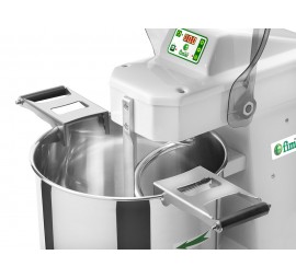 16 literes spirálkaros dagasztógép, 12 kg tésztakapacitással, 320 mm átmérőjű rozsdamentes acél kiemelhető dagasztócsészével, billentve emelhető spirál dagasztókarral, füstszínű polikarbonát fedéllel (felár ellenében rozsdamentes ráccsal is rendelhető), időkapcsolóval, biztonsági mikrokapcsolóval, karcálló festett acél burkolattal. Felár ellenében 2 sebességes változatban illetve 230 V-os kivitelben is rendelhető!