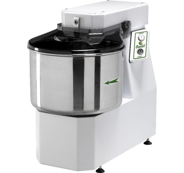 Spirálkaros dagasztógép elsősorban kenyér és pizza tészták dagasztásához 38 kg tésztakapacitással, 450 mm átmérőjű üsttel, rozsdamentes üsttel és karral, a fedelén biztonsági kapcsolóval, túlterhelés elleni védelemmel, füstszínű polikarbonát fedéllel, karcálló festett acél burkolattal. Opcionálisan rendelhető kiegészítők: mechanikus időzítő, rozsdamentes acél védőrács, kerekek, 2 sebességes változat, 230 V-os kivitel.