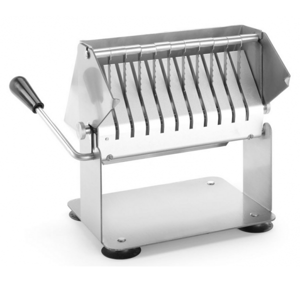 Manuális 11 szeletes kolbász szeletelő gép. Tapadókorongos stabil kialakítás. Kiváló minőségű fogazott pengék. Könnyen tisztítható.