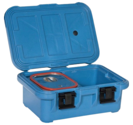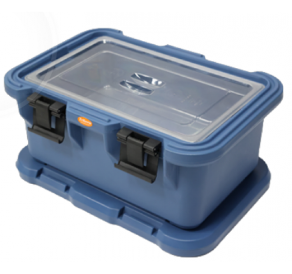 Nagy méretű, duplafalú, jó hőtartó képességgel rendelkező felülről tölthető GN 1/1 méretű thermoláda.