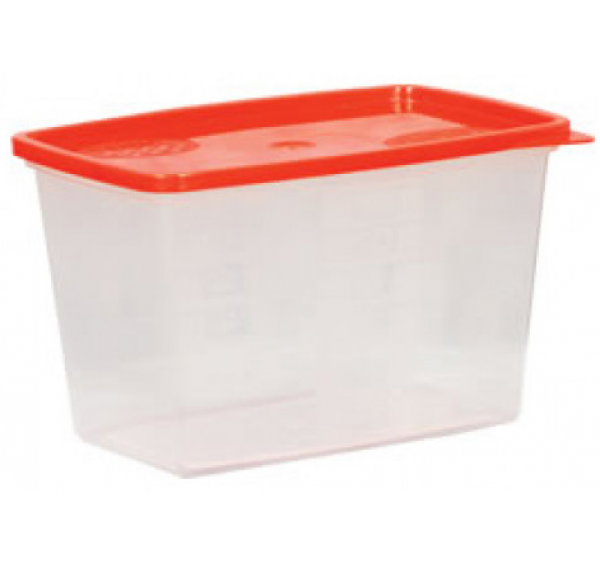 Többször használható, vastag falú, PP anyagból készült műanyag edény fedővel.