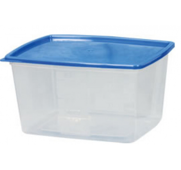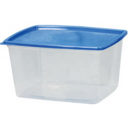 Többször használható, vastag falú, PP anyagból készült műanyag edény fedővel.