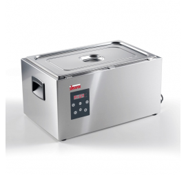 GN 1/1 kivehető edénnyel, rozsdamentes acélból készült Softcooker S 1/1  sous vide készülék, 5 tárolható programmal, hőmérséklet szabályozóval, túlfűtés elleni védelemmel. Alacsony hőmérsékletű sous vide gép, statikus fűtéssel, erőteljes, ütésálló fűtőelemekkel, tetővel és praktikus foganytúval a könnyű hordozhatóság érdekében. Maximális töltési szint: 22 liter.