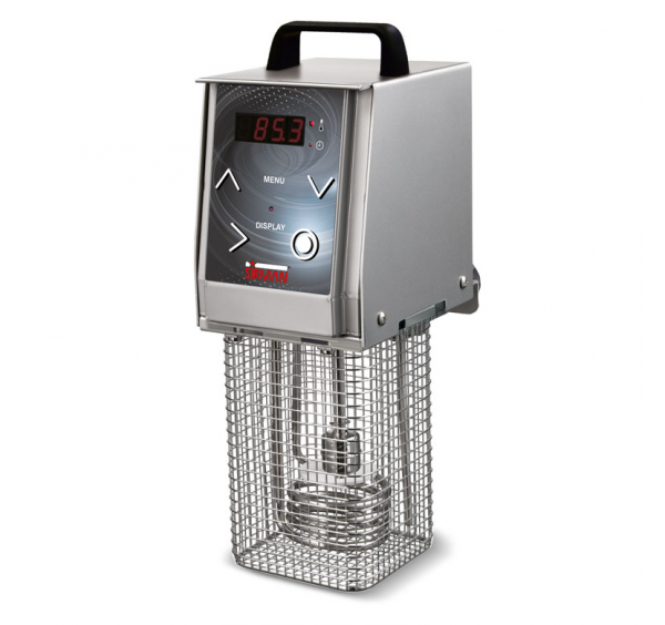 Sous vide vízforgató és vízmelegítő rendszer hőmérsékletszabályozóval, digitális hőfokkijelzővel, 25 tárolható programmal. A rozsdamentes acélszerkezetű készülék rögzíthető a melegítőmedencéhez.