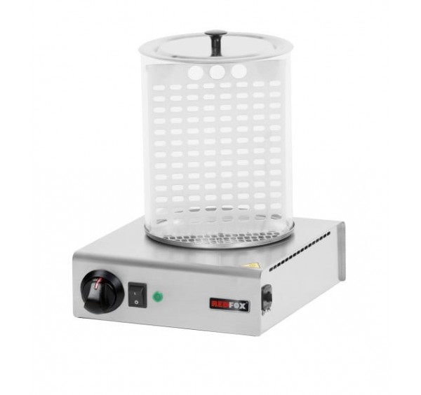 Rozsdamentes burkolattal, üveg hengerrel, osztóval, fedővel, 30-90 °C között szabályozható hőmérséklettel.
