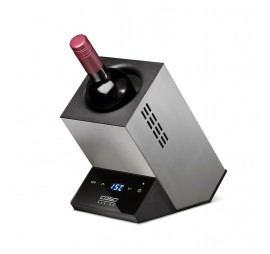 Kompakt méretének és mutatós kialakításának köszönhetően bármely tálaló éke lesz. Kiváló minőségű borhűtő egy palackhoz, legfeljebb 9 cm palackátmérővel. Nemes kivitelű rozsdamentes acél házzal, elegáns és könnyen olvasható, fehér fényű LED-kijelzővel, kényelmes érintőfelület-vezérléssel, a hőmérséklet fokonként elektronikusan állítható 5-15 °C között.