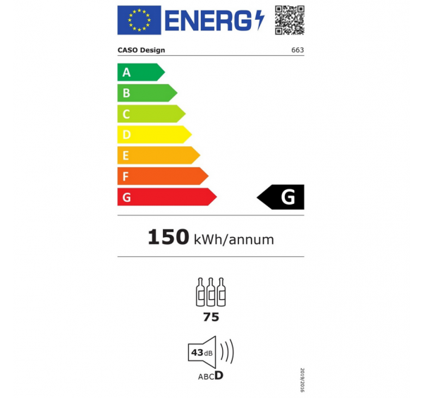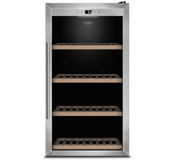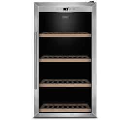 Kiváló minőségű borhűtő kompresszoros hűtéstechnikával. Egy hőmérsékleti zóna. Hatékony ventilációs rendszer biztosítja a stabil hőmérsékletet. Szabályozható hőmérséklet: 5 – 20 °C között. (A készülék belsejében elérhető maximális hőmérséklet nem lehet szignifikánsan magasabb, mint a beállítási hely környezeti hőmérséklete). 75 palack tárolására alkalmas (palack magassága 310 mm). Érintő vezérlés. Tökéletes hőszigetelés a leggazdaságosabb energiafogyasztásért. 3 rétegű szigetelő üveg UV szűrővel az optimális aromavédelemért. Fehér színű LED kijelző mutatja az aktuális hőmérsékletet. Kapcsolható belső világítás. Időtálló design, elegáns rozsdamentes acél kivitel, ergonomikus fogantyú. Nagyon halk működés.
