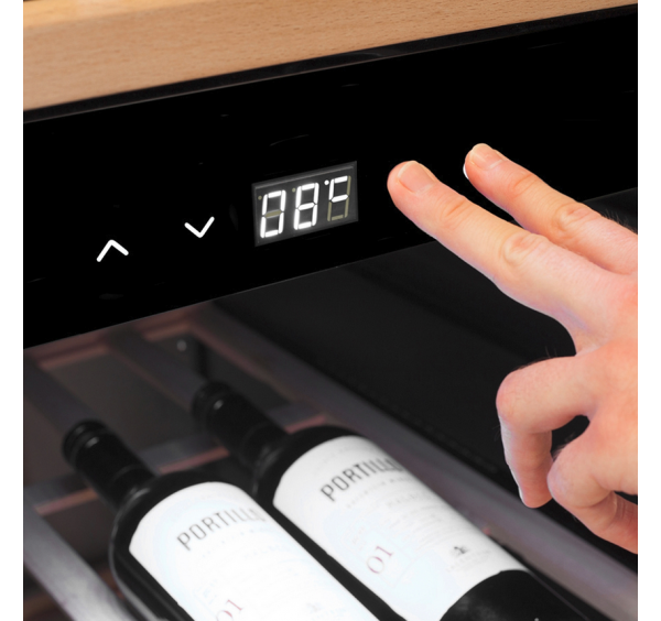 Kiváló minőségű borhűtő kompresszoros hűtési technológiával. Két különálló hőmérsékleti zóna, melyek hőmérséklete egyénileg állítható a fehérborok és vörösborok számára. Kompresszor rezgéscsökkentő lábakon: biztosítja a nyugodt és csendes helyet borainak. Aktív ventilátor biztosítják a stabil hőmérsékletet zónánként. 24 palack bor tárolására alkalmas (palackmagasság: 310 mm). 3 rétegű szigetelő üveg UV szűrővel az optimális aroma-védelemért. Kiváló hőszigetelés a leggazdaságosabb energiafogyasztásért. Hőmérséklet elektronikusan állítható 5 – 20 °C között. Érzékelő érintő vezérlés. Fehér LED hőmérséklet kijelző zónánként. Kapcsolható belső világítás. Időtálló design elegáns, rozsdamentes acél fronttal és ergonomikus fogantyúval. Nagyon halk működés.