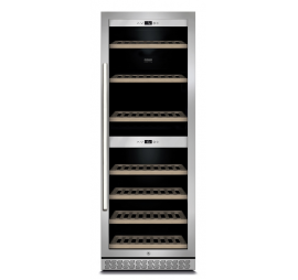 WiFi Smart Control – kényelmes vezérlés szinte bárhonnan az innovatív CASO Control alkalmazásnak köszönhetően – a CASO alkalmazás másodpercek alatt figyeli és jelent minden hibát. Két külön hőmérsékleti zóna – egyénileg állítható fehér- és vörösborhoz. A hőmérséklet elektronikusan állítható 5-20 °C (41-68 °F) között. Aktív ventilátorok hőmérsékleti zónánként, biztosítva az egyenletes hőmérsékletet zónánként. Kiváló minőségű borhőmérséklet-szabályozó készülék kompresszoros technológiával. Akár 126 palack tárolására alkalmas (310 mm magasságig). A palack mérete szabványos bordeaux-i palackon alapul. 3 rétegű szigetelő biztonsági üveg UV szűrővel az optimális fényvédelem érdekében. Kényelmes érintővezérős működtetés. Elegáns fehér LED-es hőmérséklet-kijelzővel, kapcsolható belső világítással. Időtlen kialakítás elegáns rozsdamentes acél előlappal és ergonomikus fogantyúval. Az egyik fából készült tárolópolc megdönthető.