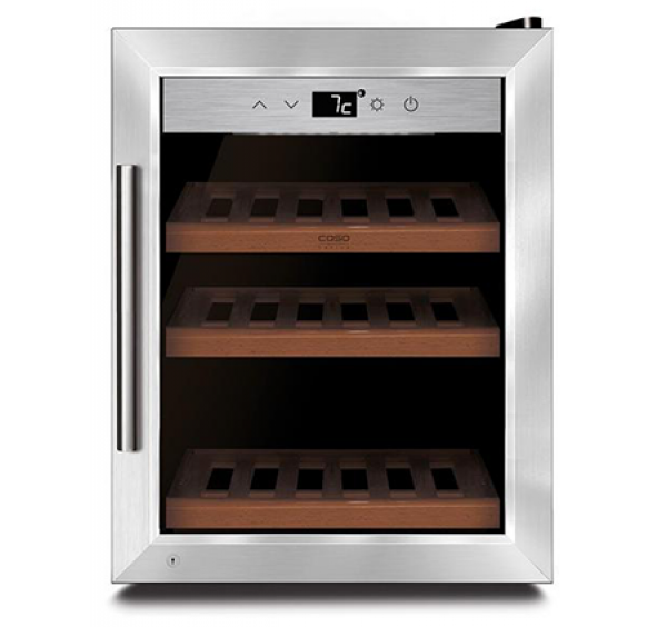 Kiváló minőségű borhűtő kompresszoros hűtéstechnikával. Egy hőmérsékleti zóna. Hatékony ventilációs rendszer biztosítja a stabil hőmérsékletet. 12 palack tárolására alkalmas (palack magassága 310 mm). 3 rétegű, UV filterrel ellátott üveg az optimális aromavédelemért. Tökéletes hőszigetelés a leggazdaságosabb energiafogyasztásért. Hőmérséklet szabályozható: 5 – 20 °C között. Fehér színű LED kijelző mutatja az aktuális hőmérsékletet. Kapcsolható belső világítás. Időtálló design, elegáns rozsdamentes acél kivitel, ergonomikus fogantyú. Nagyon halk működés.