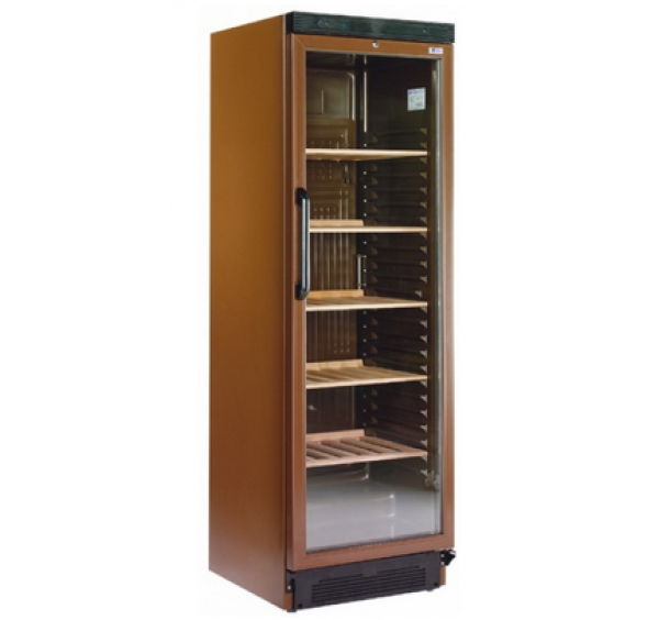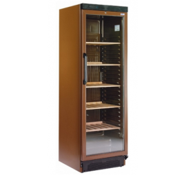 Üvegajtós borhűtő statikus hűtéssel, belső világítással, fa polcokkal..