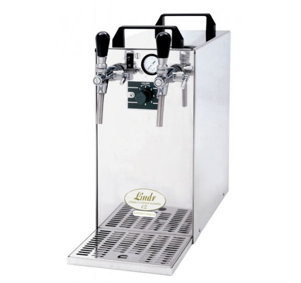 Száraz hűtési rendszerű kétkaros, légkompresszoros asztali sörcsapoló. A rozsdamentes anyagból készült csapoló 7 fokozatú hőfokszabályozóval és csepptálcával szerelve kapható.