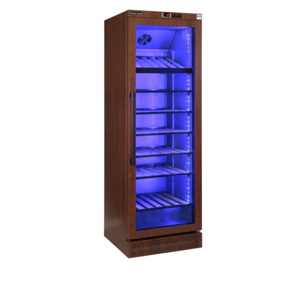 400 literes üvegajtós borhűtő fa mintázatú külső felülettel