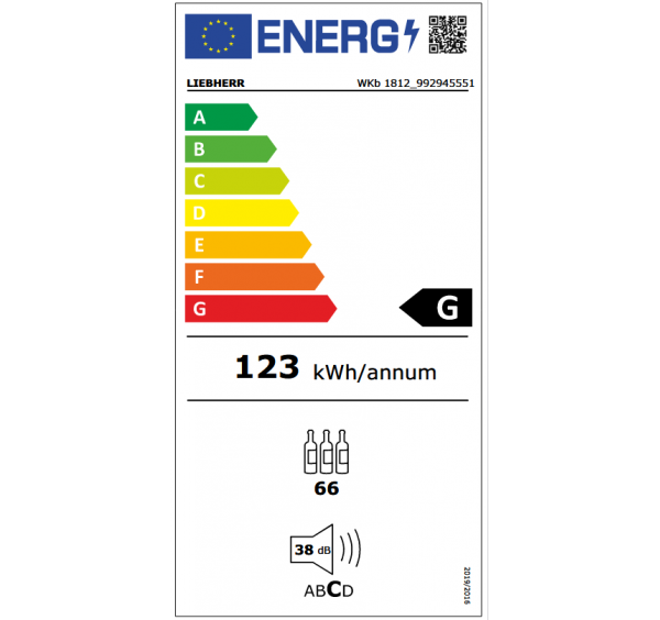 Borklíma szekrény ventilációs hűtési rendszerrel, HardLine hőszigetelt üvegajtóval, kapcsolható belső, felső világítással, egy hőmérsékleti zónával, 2 fokozatban állítható ventiláció és páratartalommal, elektronikus vezérléssel, digitális hőmérsékletkijelzéssel, optikai és akusztikus riasztási funkciókkal: túl magas/alacsony belső hőmérséklet és ajtó nyitva maradás esetén, billentyűzár funkcióval, kívül fekete színű porszórt acél burkolattal, egy darabból készült, hőformázott, szürke színű polisztirol (környezetbarát) belső burkolattal, elpárologtató védőburkolattal (odafagyás elleni védelem), 2 db horganyzott acél rácspolccal, bordázott padlólemezzel. A polcok magassága 30 mm-ként állítható. Kapacitás: 66 db 0,75l bordói palack. Aktív szénszűrővel. Az ajtó önműködően csukódik és nyitásának iránya megfordítható. Higiénikus, cserélhető ajtószigeteléssel, automatikus leolvasztással, 1 pár első vízszintező talppal, FCKW-FKW mentes hűtőközeggel (R 600a) és falszigeteléssel. Külső hőmérséklet: +10/+38°C között - SN-ST klímaosztály. Éves energiafogyasztás 122,64 kWh. G energiahatékonysági osztály. Zajszint: 38 dB. C zajszint osztály.