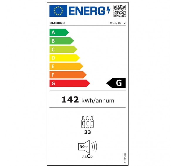 ventilációs hűtéssel (39 dbA), környezetbarát R600a hűtőközeggel, rozsdamentes acél keretes kétrétegű hőszigetelt UV-szűrős üvegajtóval, rozsdamentes acél fogantyúval, megfordítható ajtónyitódással, mágneses zárótömítéssel, 31 palack (0,75 l) elméleti kapacitással, 5 db kihúzható fa polccal, belső kék led világítással, felül +5/+10°C, alul +10/+18°C között elektronikusan szabályozható hűtési hőmérséklettel, digitális kijelzővel, 4. klímaosztályú (+30°C) és G energiaosztályú besorolással, automatikus leolvasztással, CFC mentes poliuretán szigeteléssel (35 mm), belül műanyag, kívül fekete festett acél burkolattal, szintezhető talpakkal