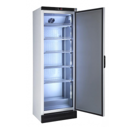 Teleajtós háttérhűtő, hazai gyártású sikertermék, melynek 400 literes kapacitását 5 polccal oszthatjuk meg. Ventilációs hűtés biztosítja azt egyenletes belső hőmérsékletet, melyet digitális hőfokszabályzóval álíthatunk be és digitális kijelzőn ellenőrizhetünk. Fehér színű műanyagbevonatos acél külsővel és szürke műanyag bevonatos acél belső burkolattal készül. A kiváló ár-érték arányú készülékek szintezését állítható lábak segítik. Polcok max. terhelhetősége: 30 kg.