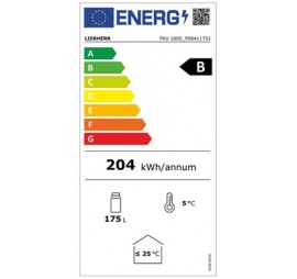 Teli ajtós hűtőszekrény statikus hűtési rendszerrel, automatikus leolvasztással, zárható HardLine ajtóval, belső és oldalsó világítással, mechanikus vezérléssel, digitális hőmérsékletkijelzéssel, kívül fehér színű porszórt acél burkolattal, egy darabból öntött polisztirol (környezetbarát) belső burkolattal, 3 db fehér színű védőbevonatos acél rácspolccal, 1db padlóráccsal, a polcok magassága 35 mm-ként állítható, polconkénti terhelhetőség: max. 50 kg, kapacitás: 221 db 0,33l aludoboz, 118 db 0,5l PET palack, az ajtó nyitásának iránya megfordítható, higiénikus, cserélhető ajtószigetelés, 1 pár első vízszintező talp, FCKW-FKW mentes hűtőközeg (R 600a) és falszigetelés, külső hőmérséklet: +10/+35°C között - CC1 klímaosztály, éves energiafogyasztás: 204,40 kWh; B energiahetékonysági osztály.