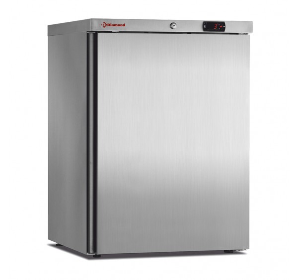 150 literes hűtőszekrény, ventilációs hűtéssel, környezetbarát R600a hűtőközeggel, zárható teli ajtóval, beépített led világítással, 460x410x680 mm-es belmérettel, 2 db (475x385 mm és 475x245 mm) állítható magasságú műanyag bevonatú acél rácspolccal, rozsdamentes acél polctartókkal, megfordítható ajtónyitódással, cserélhető mágneses zárótömítéssel, süllyesztett fogantyúval, nyitásérzékelő mikrokapcsolóval, 90°-tól önmagától visszacsukódó ajtóval, +1/+8°C között elektronikusan szabályozható hűtési hőmérséklettel és digitális kijelzéssel, 4. klímaosztályú (+30°C) és C energiaosztályú besorolással, automatikus leolvasztással, CFC mentes 50 mm vastag poliuretán szigeteléssel, kívül-belül rozsdamentes acél burkolattal, 4 db szintezhető talppal, "Side by Side" elhelyezésre alkalmas kialakítással