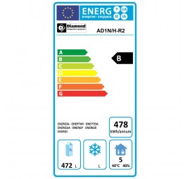 Zárható teli ajtós hűtőszekrény, felső aggregáttal, ventilációs hűtéssel, R290 környezetbarát hűtőközeggel, GN 2/1 belmérettel, 3 db állítható magasságú 530x650 mm méretű rácspolccal, belső led világítással, HACCP kompatibilis digitális vezérléssel és kék ledes hőmérsékletkijelzéssel, 100°-nál megálló és önmagától visszazáródó ajtóval, megfordítható ajtónyitási iránnyal (opcionálisan rendelhető AKDG-L kit segítségével), ergonómikus kialakítású süllyesztett hosszanti fogantyúval, cserélhető mágneses zárótömítéssel, nyitásérzékelő mikrokapcsolóval, automatikus leolvasztással, lekerekített belső sarkokkal, 75 mm vastagságú CFC mentes poliuretán szigeteléssel, kívül-belül rozsdamentes acél burkolattal (galvanizált acél hátlappal), 4 db állítható magasságú acél lábbal (120-150 mm), -2/+8°C között szabályozható hűtési hőmérséklettel, 5. klímaosztályú besorolással (+40°C), C energiaosztályú besorolással.
