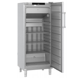 Mélyhűtő szekrény ventilációs hűtési rendszerrel (NoFrost technológia); zárható teli ajtóval; kapcsolható felső LED világítással; LightAlarm: riasztás fényjelzéssel; hűtési tartomány: -9/-26°C között; SuperFrost funkció; ajtóba integrált érintőgombos monokróm kijelző; digitális hőmérsékletkijelzés; optikai és akusztikus riasztási funkciók: eltérő hőmérséklet, ajtó nyitva maradás és áramkimaradás esetén, az áramellátás helyreállásával; integrált adatmemória: elmúlt időszak (kb. 42 nap) min/max. hőmérsékleti értékeinek eltárolása és kijelzőn történő megjelenítése; billentyűzár funkció; nyomáskiegyenlítő szelep; keretfűtés; kívül rozsdamentes acél burkolat; egy darabból készült, hőformázott, szürke színű polisztirol (környezetbarát) belső burkolat; tisztító nyílás; 4 db megerősített, 600x510 mm méretű, szürke színű védőbevonatos acél rácspolc, STOP funkcióval; polconkénti terhelhetőség: max. 60 kg; a polcok magassága 100 mm-ként állítható; padlórács; az ajtó 90°-os nyitási szög felett nyitva marad, ez alatt önműködően csukódik és nyitásának iránya megfordítható; higiénikus, cserélhető ajtószigetelés; ergonomikus alumínium fogantyú; automatikus - szükségvezérelt és manuálisan is indítható - forrógázos leolvasztás; rozsdamentes acél 150-180 mm között állítható lábak; FCKW-FKW mentes hűtőközeg (R 290) és falszigetelés (67 mm); külső hőmérséklet: +10/+40°C között - 5. klímaosztály; FRFCvg 5501 hűtővel párba állítható; éves energiafogyasztás: 1007 kWh; B energiahatékonysági osztály