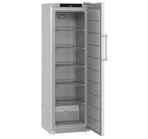 Mélyhűtő szekrény statikus (SmartFrost - szigetelésbe habosított elpárologtató - technológia) hűtési rendszer; zárható teli ajtó; kapcsolható felső LED világítás; LightAlarm: riasztás fényjelzéssel; hűtési tartomány: -9/-26°C között; SuperFrost funkció; ajtóba integrált érintőgombos monokróm kijelző; digitális hőmérsékletkijelzés; optikai és akusztikus riasztási funkciók: eltérő hőmérséklet, ajtó nyitva maradás és áramkimaradás esetén, az áramellátás helyreállásával; integrált adatmemória: elmúlt időszak (kb. 42 nap) min/max. hőmérsékleti értékeinek eltárolása és kijelzőn történő megjelenítése; billentyűzár funkció; nyomáskiegyenlítő szelep; keretfűtés; kívül rozsdamentes acél burkolat; egy darabból készült, hőformázott, szürke színű polisztirol (környezetbarát) belső burkolat; 5 db megerősített, 400x408 mm méretű, szürke színű védőbevonatos acél rácspolc, STOP funkcióval; a polcok kivehetőek; polconkénti terhelhetőség: max. 45 kg; padlórács; az ajtó 90°-os nyitási szög felett nyitva marad, ez alatt önműködően csukódik és nyitásának iránya megfordítható; higiénikus, cserélhető ajtószigetelés; ergonomikus alumínium fogantyú; manuális leolvasztás; szintező talpak; FCKW-FKW mentes hűtőközeg (R 290) és falszigetelés (80 mm); külső hőmérséklet: +10/+40°C között - 4. klímaosztály; FRFCvg 4001 hűtővel párba állítható; éves energiafogyasztás: 976 kWh