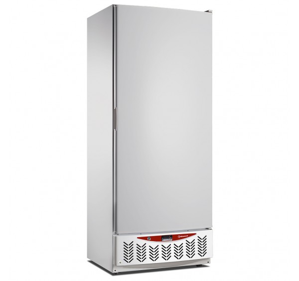 525 literes mélyhűtőszekrény, statikus polchűtéssel, környezetbarát R290 hűtőközeggel, GN 2/1-es - 650x538x1480 mm-es belmérettel, 6 db fix polccal, zárható teli ajtóval, megfordítható ajtónyitási iránnyal, cserélhető mágneses zárótömítéssel, süllyesztett fogantyúval, 90°-tól önmagától visszacsukódó ajtóval, -18/-22°C között elektronikusan szabályozható hűtési hőmérséklettel és digitális kijelzéssel, 4. klímaosztályú (+30°C) besorolással, manuális leolvasztással, 60 mm vastag CFC mentes poliuretán szigeteléssel, lekerekített belső sarkokkal, belül fehér egy darabból öntött műanyag, kívül fehér festett acél burkolattal, 4 db görgővel és 2 db szintezhető talppal, "Side by Side" elhelyezésre alkalmas kialakítással.