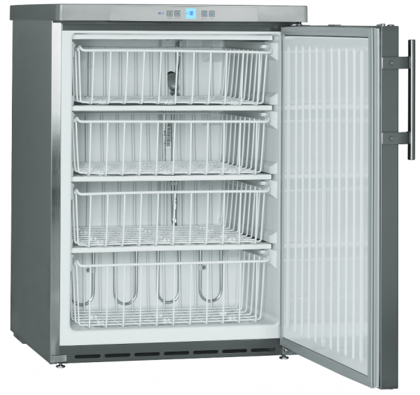 Pult alá helyezhető mélyhűtő szekrény polconkénti statikus hűtési rendszerrel, zárható HardLine teli ajtóval, SuperFrost funkcióval, elektronikus vezérléssel, digitális hőmérsékletkijelzéssel, optikai és akusztikus riasztási funkciókkal: túl magas belső hőmérséklet, ajtó nyitva maradás és áramkimaradás esetén, az áramellátás helyreállásával, billentyűzár funkcióval, keretfűtéssel, kívül rozsdamentes acél burkolattal, egy darabból készült, hőformázott polisztirol (környezetbarát) belső burkolattal, 3 db fix hűtött polccal + 1 db felső elpárologtató ráccsal, 4 db kivehető kosárral. Polconkénti terhelhetőség: max. 24 kg. Polcok közötti távolság: 3x150 mm, 1x170 mm. Az ajtó nyitásának iránya megfordítható. Higiénikus, cserélhető ajtószigeteléssel, manuális leolvasztással, 1 pár első vízszintező talp;pal, FCKW-FKW mentes hűtőközeggel (R 600a) és falszigeteléssel. Külső hőmérséklet: +10/+40°C között - 5. klímaosztály. FKUv 1660 és FKUv 1663 hűtővel párba állítható és összeépíthető. Éves energiafogyasztás: 265 kWh.