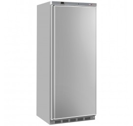 600 literes mélyhűtőszekrény, statikus hűtéssel, környezetbarát R290 hűtőközeggel, megfordítható nyitódású kulccsal zárható rozsdamentes acél teli ajtóval, 6 db GN 2/1 méretű fix hűtött rácspolccal, mágneses zárótömítéssel, ergonómikus kialakítású süllyesztett ajtófogantyúval, belső led világítással, -22/-15°C között elektronikusan szabályozható hűtési hőmérséklettel, digitális kijelzéssel, 4. klímaosztályú (+30°C) besorolással, manuális leolvasztással, CFC mentes 65 mm-es poliuretán szigeteléssel, belül fehér öntött műanyag, kívül szürke színű acél burkolattal, görgőkkel és szintezhető talpakkal