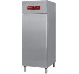 Teli ajtós mélyhűtő szekrény kifejezetten cukrászati és sütőipari célra, felső aggregáttal, ventilációs hűtéssel, környezetbarát R290 hűtőközeggel, 1 teli ajtóval, 600x400 mm-es belmérettel, 20 pár polctartó sínnel, 65 mm-es síntávolsággal, digitális vezérléssel és kék ledes hőmérsékletkijelzéssel, belső világítással, automatikus leolvasztással, 90°-nál megálló és önmagától visszazáródó ajtóval, rejtett kialakítású oldalsó süllyesztett hosszanti fogantyúval, megfordítható ajtónyitási iránnyal, cserélhető mágneses zárótömítéssel, nyitásérzékelő mikrokapcsolóval, lekerekített belső sarkokkal, CFC mentes poliuretán szigeteléssel, kívül-belül rozsdamentes acél burkolattal (kezelt acél hátlappal, 4 db állítható magasságú acél lábbal, -10/-20°C között szabályozható hűtési hőmérséklettel, normál (N) klímaosztályú besorolással (+38°C). Tartozékként külön rendelhető hozzá zárszerkezet.