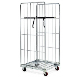Rácsos áruszállító kocsi (rolli kocsi), 2 oldalon zárt kivitel, 72x81x180cm. 600kg maximális teherbírás. A szett tartalma: Gurulós alsó árutároló felület, 2 db rácsos oldalfal. Nyitott elülső és hátsó rész. Galvanizált acél szerkezet. 2 db fix és 2 db polipropilén bolygókerékkel. 2db alaptartozék nylon anyagú rögzítőpánttal. Lapraszerelve, fólia csomagolásban szállítva. Opcionálisan rendelhető kiegészítők: Hátsó rácsfal, Elülső nyitható rács (2/3-os), polcok (max 3db), további rögzítőpántok.