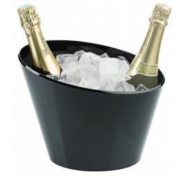 Fekete csillogó akrilból készült ovális pezsgősvödör két 0,75 literes pal..