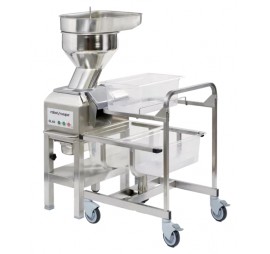 Nagy teljesítmény: 3 féle töltőfejjel: automata+etetőtálca, nyomókaros, 4 csöves. A sokféle tárcsa lehetővé teszi az Ön számára, hogy minden gyümölcs- és zöldségfeldolgozási műveletet elvégezzen, amit csak szeretne: többek között a szeletelést, a hullámvágást, a reszelést, a kockára vágást, a szalagra- vagy szalmára vágást és a hasábburgonya készítését. Robosztus: nagy teljesítményű ipari indukciós motor intenzív használatra. Motor burkolat, fedél és edény: rozsdamentes acél, rozsdamentes állvánnyal, 2 db fékezhető kerékkel, speciális 3 szinten állíthatókocsival, 3 db GN1/1 edénnyel, 3 mm-es burgonyapüré tartozékkal (átnyomó + lyuktárcsa), 16 db tartozék tárcsával.