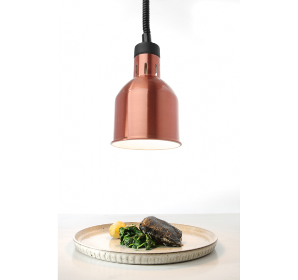 Melegentartó infralámpa, függesztett, 250W teljesítmény, réz színű, hengere..