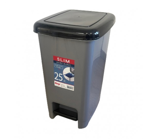 Slim típusú két színű műanyagból készült, hulladék gyűjtő a lábpedálnak kialakított kényelmes mélyedéssel, űrmértéke 25 L-es.