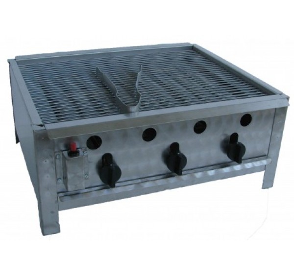 Mobil felhasználásra kiválóan alkalmas gázüzemű grillező készülék, komplett rozsdamentes burkolattal, álló kivitelben. Grillezhet kolbászt, szelet húsokat, zöldségeket otthon az erkélyen, a kertjében, vagy akár szabadtéri rendezvényeken is.Piezzoval, thermoelektromos égésbiztosítóval felszerelt rozsdamentes szerkezet. Krómozott rostélyrács. 3 szabályozható sütőzóna.