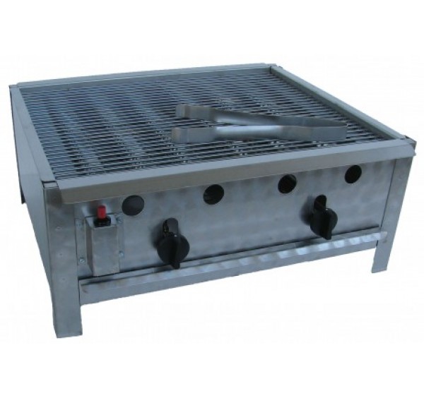 Mobil felhasználásra kiválóan alkalmas gázüzemű grillező készülék, komplett rozsdamentes burkolattal, asztali kivitelben. Grillezhet kolbászt, szelet húsokat, zöldségeket otthon az erkélyen, a kertjében, vagy akár szabadtéri rendezvényeken is.Piezzoval, thermoelektromos égésbiztosítóval felszerelt rozsdamentes szerkezet. Krómozott rostélyrács. 2 szabályozható sütőzóna.