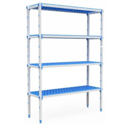 Eloxált alumínium szerkezet, polietilén polcbetétek. Mélysége gastronom 1/1 edények méretéhez igazodik. Könnyű és gyors összeszerelés szerszámok nélkül. Szintenként 150 kg terhelhetőség. Nagy szilárdság jellemzi. Kiemelhető, ipari mosogatógépben mosható, perforált polcbetétekkel, rendkívűl robosztus keresztmerevítővel, Szintezhető lábakkal. Kiváló választás hűtőkamrákban és raktárakban való tárolásra. Hőmérséklet tartomány: -30....+75 C°. Lapraszerelt csomagolásban!