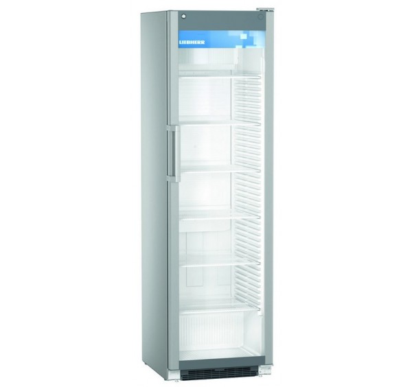 Üvegajtós hűtőszekrény ventilációs hűtési rendszerrel, zárható hőszigetelt üveg ajtóval, kapcsolható belső, oldalsó és felső LED világítással ajtóra ragasztható reklám matricával (matrica mérete: 487 x 96 mm), mechanikus vezérléssel analóg hőmérsékletkijelzéssel, kívül szürke színű porszórt acél burkolat, egy darabból készült, hőformázott polisztirol (környezetbarát) belső burkolattal, 6 db fehér színű védőbevonatos acél rácspolccal, STOP funkcióval, bordázott padlólemezzel. A polcok magassága 30 mm-ként állítható. Polconkénti terhelhetőség: max. 45 kg. Kapacitás: 608 db 0,33l aludoboz (facing: 7), 304 db 0,5l PET palack (facing: 7). Az ajtó önműködően csukódik és nyitásának iránya megfordítható. Higiénikus, cserélhető ajtószigeteléssel, alumínium fogantyúval automatikus leolvasztással, 1 pár első vízszintező talppal, FCKW-FKW mentes hűtőközeggel (R 600a) és falszigeteléssel. Külső hőmérséklet: +10/+35°C között - CC2 klímaosztály. Éves energiafogyasztás: 613,57 kWh. C energiahatékonysági osztály.