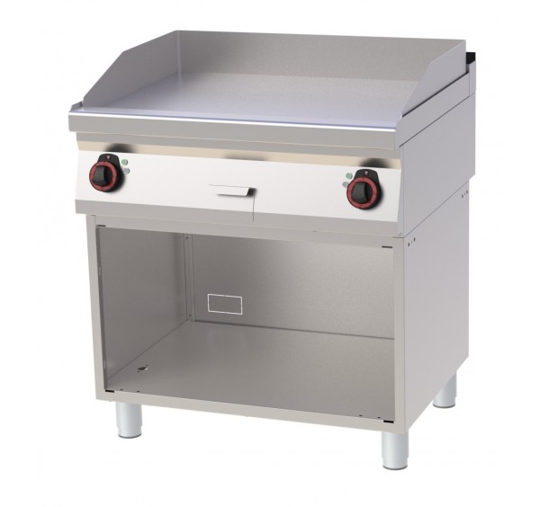 Rozsdamentes burkolat, lekerekített élek, 12 mm vastag sima, öntöttvas sütőfelület, zsírgyűjtőfiók.