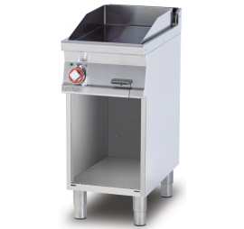 Rozsdamentes burkolat, szintezhető lábak, lekerekített élek, főzősorba illeszthető, 3 oldalon zárt elől nyitott tároló. Igény szerint az ajtó rendelhető,sima, öntöttvas sütőfelület, kivehető 3 oldali fröccsenésgátló perem.