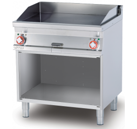 Rozsdamentes burkolat, szintezhető lábak, lekerekített élek, főzősorba illeszthető, 3 oldalon zárt elől nyitott tároló. Igény szerint az ajtó rendelhető,sima, 2 zónás krómozott sütőfelület, kivehető 3 oldali fröccsenésgátló perem.