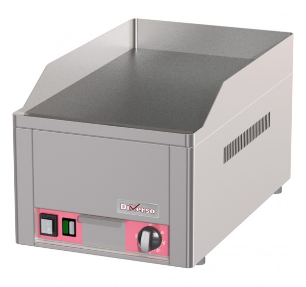 asztali elektromos üzemű sütőlap (3 kW), sima öntöttvas sütőfelülettel és oldalmagasítással, sütőlap mérete: 325x480 mm, zsírgyűjtő fiókkal, mechanikus vezérléssel, főkapcsolóval, hőfokszabályozás: 50-300°C között, rozsdamentes acél burkolattal.