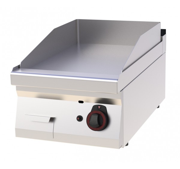 Rozsdamentes burkolat, lekerekített élek, 12 mm vastag sima, öntöttvas sütőfelület, zsírgyűjtőfiók.