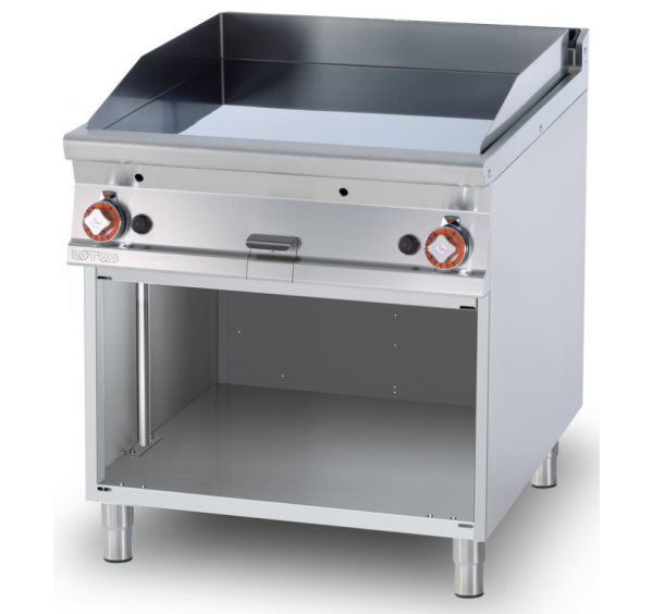 2 zónás Lotus álló gázüzemű rostlap sima, öntöttvas sütőfelülettel, nyitott semleges tárolóval