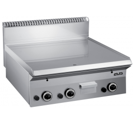 Gázüzemű szeletsütő sima sütőfelülettel, termosztátos hőfokszabályzással, 3 fűtőzónával, biztonsági mágnes szeleppel, kivehető olaj gyűjtő fiókkal. Könnyen tisztítható, higiénikus.
