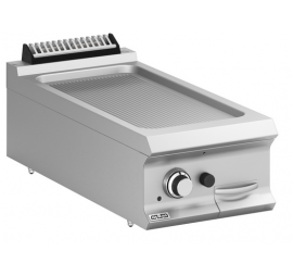 Gázüzemű lapsütő alapépítmény nélkül, rozsdamentes kivitelben. Előlapon elhelyezett IPX5 vízállóságú forgatógombos kezelőfelülettel, termosztatikus hőmérséklet-szabályozással, 1db max. 9,2 kW teljesítményű égőfejjel Az elől lekerekített sarkú acél sütőfelület 15 mm vastag. A süllyesztett sütőfelületnek és az opcionálisan vásárolható teflonsapkának köszönhetően a bő zsírban sütés is lehetővé válik a készülékben! Az opcióként rendelhető teflonsapka könnyen eltávolítható és megkönnyíti a használt zsír leeresztését egy 2,5 liter kapacitású, kivehető rozsdamentes acél fiókba. A gázüzemű lapsütő hőfoktartománya 145 és 290 °C között van. A készülék tisztítását és karbantartását egyszerűvé teszi a csavarok nélküli kémény és a gyorsan leszerelhető alsó lemez kialakítása, továbbá az opcionálisan rendelhető hátsó fröccsenésgátló. Kivehető hátsó fröccsenésgátló, teflonsapka és kaparó a lapsütőhöz opcionálisan vásárolhatók meg.