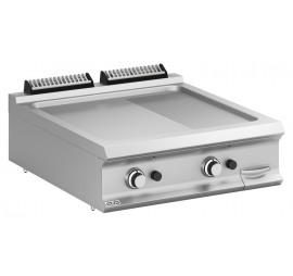 2 zónás MBM asztali gázüzemű rostlap 2/3 sima, 1/3 bordázott öntöttvas sütőfelülettel