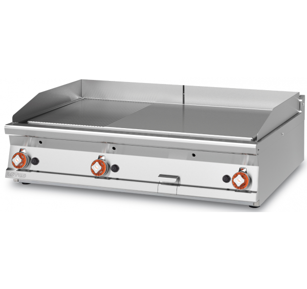 3 zónás Lotus asztali gázüzemű rostlap 2/3 sima, 1/3 bordázott krómozott sütőfelülettel