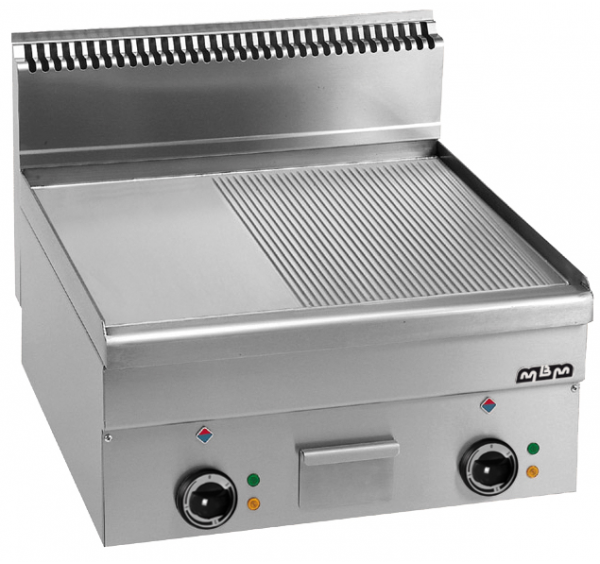 2 zónás MBM asztali elektromos rostlap félig sima, félig bordázott öntöttvas sütőfelülettel
